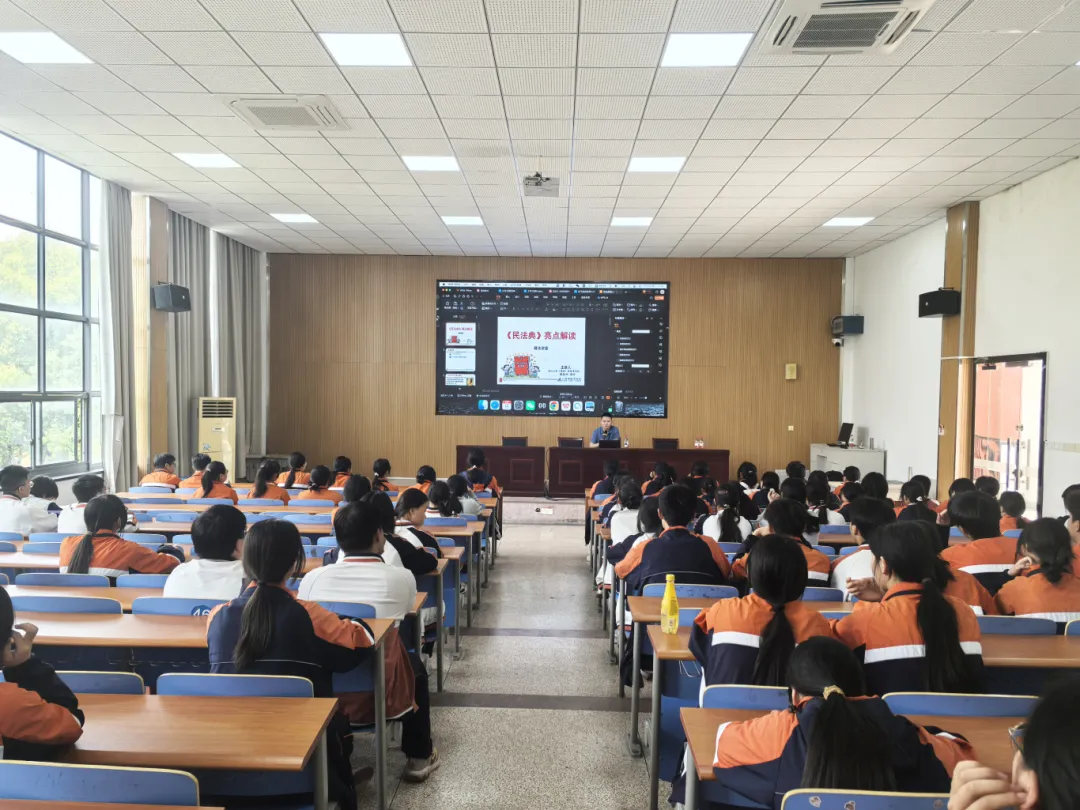 為增強學生法制觀念,推動校園法制文化建設(shè),近日,浙江省湖州藝術(shù)與設(shè)計學校聯(lián)合湖州市仁皇山司法所,特邀浙江六和律師事務(wù)所專業(yè)律師走進校園,面向全體值周班學生及70個班級的班長開展題為“《民法典》亮點解讀”的普法講座。