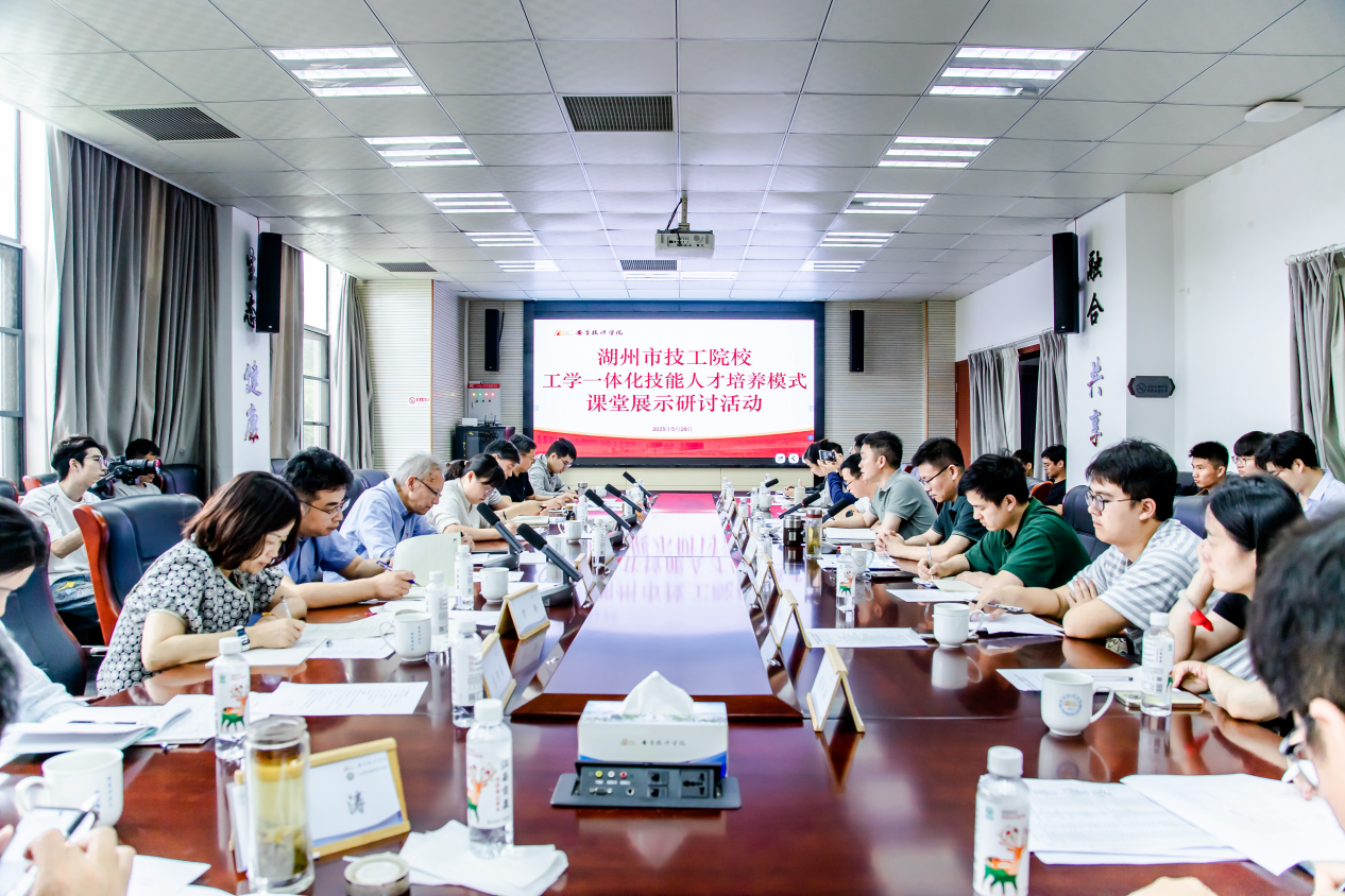 5月28日,由湖州市人力資源和社會保障局職業能力建設處組織的“湖州市技工院校工學一體化技能人才培養模式課堂展示研討活動”在安吉技師學院舉行,湖州市人社局職建處副處長李云出席,省高水平專業群建設專家王成方、屠立、朱求勝現場作課堂點評,湖州工程技師學院、湖州交通技師學院、湖州市技師學院、長興技師學院、湖州求是技工學校、安吉技師學院各派代表參與。本次活動共分“擬推選部優課堂展示”“安吉技師學院工學一體化課堂展示”“課堂構想交流”“專家點評”四個環節,全方位展現了湖州市技工院校在大力推行工學一體化培養模式中取得的辦學成果。