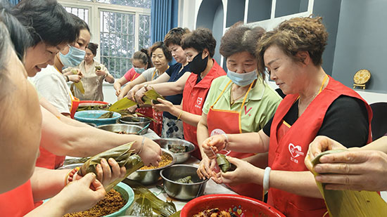 活動(dòng)當(dāng)天,老年志愿者們?cè)缭鐏?lái)到活動(dòng)現(xiàn)場(chǎng),準(zhǔn)備好糯米、粽葉、肉等食材。隨后,大家圍在一起,紛紛露出看家本領(lǐng),折粽葉、填糯米、放餡料、裹粽葉、扎棉線,一道道工序有條不紊,不一會(huì)兒,一個(gè)個(gè)飽滿緊實(shí)、形態(tài)各異的粽子便擺滿了桌面。現(xiàn)場(chǎng)歡聲笑語(yǔ)不斷,大家一邊包粽子,一邊交流端午節(jié)的傳統(tǒng)習(xí)俗,氣氛十分融洽。