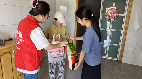 包粽子活動(dòng)結(jié)束后,成校老師和協(xié)會(huì)成員帶著滿滿的愛(ài)心和剛剛包好的粽子,走進(jìn)特殊家庭。每到一戶都與他們親切交談,詳細(xì)了解他們的生活狀況和實(shí)際需求,傾聽(tīng)他們的心聲,并送上節(jié)日的祝福,讓他們感受到來(lái)自社會(huì)大家庭的關(guān)愛(ài)與溫暖。