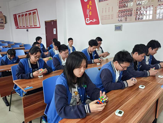 “魔方達人”校園挑戰賽堪稱腦力與手速的精彩對決。5月8日星期四中午,14位選手參加了第五屆“魔方達人”校園挑戰賽。經過激烈的角逐,24機電高考2班的謝斌以 “三階魔方 18 秒復原、四階魔方 1 分 12 秒” 兩個第一的亮眼成績摘得桂冠。比賽中,選手們屏息凝神,魔方在指尖飛速旋轉,色塊如彩虹般流動,不僅展現了個人的空間思維能力,更在觀眾的加油聲中搭建起無形的情感橋梁。