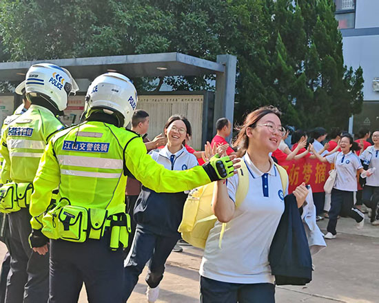 7:40分,在警車的開道護送下,16輛送考大巴組成車隊緩緩駛出校園,奔赴考場。“老師們用擊掌的方式讓我們放松心情,警車開道更讓我感受到滿滿的儀式感,我一定會全力以赴!”一名高三學生激動地說。校長吳曉彩表示:“紅色代表喜慶,擊掌傳遞力量,這是我們一貫堅持的送考傳統(tǒng)。”(郭超婷)