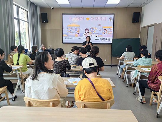 活動(dòng)當(dāng)日,新碶成校的教室熱鬧非凡。桌上整齊陳列著五彩斑斕的毛線、精致的鉤針,為這場(chǎng)手工盛宴做好準(zhǔn)備。