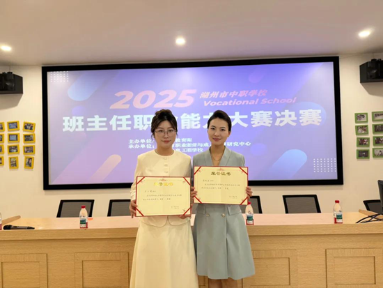 2025年湖州市中等職業學校班主任職業能力大賽決賽于6月4日圓滿落幕。浙江省湖州藝術與設計學校鄭凱麗、朱云嘯兩位教師憑借扎實的理論功底和創新的實踐能力,均獲一等獎,實現第五年蟬聯雙一等獎的佳績。