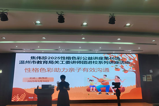 為切實(shí)推進(jìn)心理健康工作的高質(zhì)量發(fā)展,持續(xù)完善青少年心理健康工作體系,有效提升學(xué)生心理健康水平,營造校園陽光和諧、積極向上的氛圍,近期,龍灣區(qū)職業(yè)技術(shù)學(xué)校特邀溫州市教育局關(guān)工委講師團(tuán)國家二級心理咨詢師、血型性格色彩金牌講師焦偉珍老師,為家長帶來一場題為《讀懂孩子 從心開始——性格色彩助力親子有效溝通》的精彩講座。
