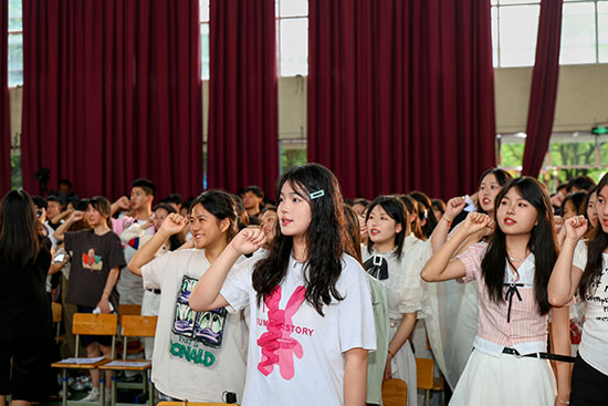 校長徐春燕說:“此刻,我站在這里,看著臺下一張張青春洋溢的臉龐,不禁想起引發(fā)全球熱議的AI技術。我們驚嘆于它強大的學習能力、迅捷的反應速度,甚至能模仿人類進行創(chuàng)作。然而,你們身上所閃耀的獨特光芒,恰恰是任何AI所無法復制的寶藏。”她期待同學們能為自己的選擇“編寫程序”,為社會運行“優(yōu)化算法”,為人性光輝“持續(xù)跌代”。