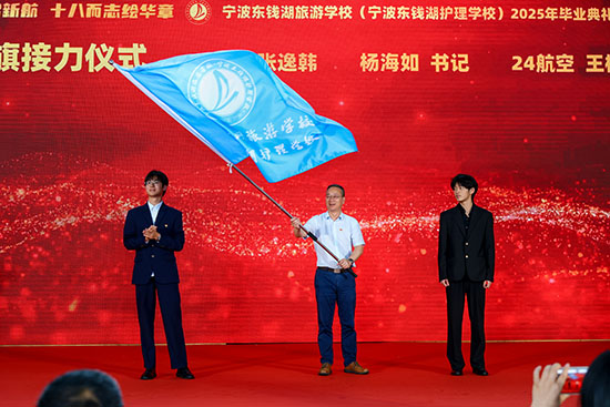 伴隨著激昂的音樂,現(xiàn)場進行校旗接力儀式。22航空班張逸韓同學將校旗交于黨總支書記楊海如,再由楊書記傳遞給24航空班王楷瑞同學,象征著新舊傳承,揚帆精神的傳遞。當父母為孩子戴上成人帽的那一刻,有媽媽淚濕了眼眶,有爸爸輕輕為兒子正起了帽檐;當一位位班主任走出開合門時,他們的學生奔跑過來送上鮮花和擁抱;當大屏幕上播放起春夏秋冬的點點滴滴時,臺下的學子們于鴉雀無聲中流露出不舍與懷念……