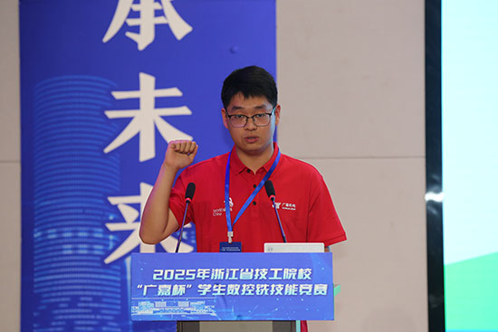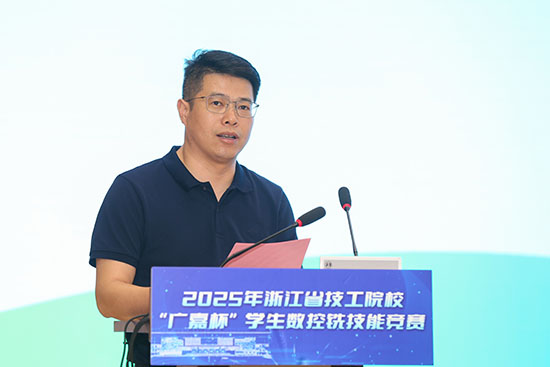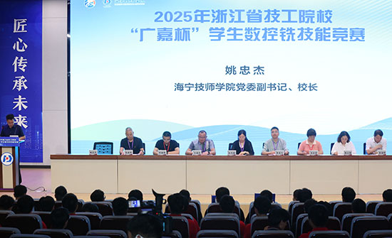 6月9日下午,2025年浙江省技工院校“廣嘉杯”學生數控銑技能競賽在海寧技師學院尖山校區報告廳拉開帷幕。開幕式由海寧技師學院副校長程鋒主持。