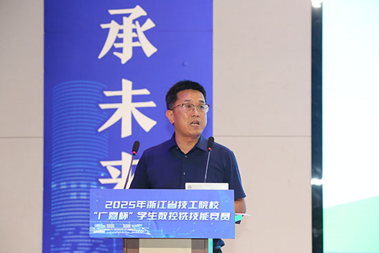 海寧市人力社保局副局長費笑飛致辭,此次競賽落地海寧技師學院,既是對海寧市技工教育成果的肯定,也是對技能人才培養模式的全面檢驗與示范引領。我們將以此為契機,以更實舉措推動技工教育升級,加速構建“產教訓融合、政校企協同”的人才培養體系,為長三角先進制造業基地建設賦能。