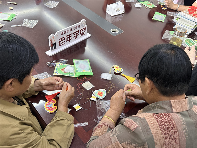 隨著制作的推進,一個個形狀各異的香包雛形逐漸顯現。老人們一邊制作,一邊相互交流心得,分享著自己的小技巧,現場氣氛融洽而熱烈。待香包主體縫制完成后,老人們將散發著清香的中藥材和柔軟的填充棉緩緩塞進香包內,再仔細地收口,最后系上漂亮的流蘇和掛繩。不一會兒,一個個精致可愛的香包便呈現在大家眼前,有憨態可掬的小動物造型,有寓意吉祥的圓形、方形香包,色彩斑斕,栩栩如生。