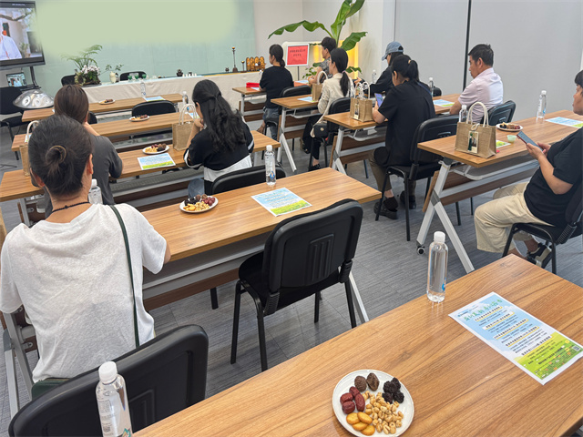 培訓室內,茶香裊裊。大付老師身著素雅茶服,一開場便以親切的話語拉近了與學員們的距離。他先從茶葉的基礎知識講起,詳細介紹了綠茶、紅茶、烏龍茶等不同茶類的特點、產地、制作工藝,還結合安吉當地特色,著重講解了安吉白茶的獨特之處,讓學員們對茶葉有了更全面深入的認識。
