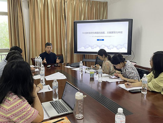 活動邀請正高級教師潘榮輝開展《科創(chuàng)教育研究課題的選題、方案撰寫與申報》專題講座。潘老師從核心價值、開發(fā)策略、方案撰寫、課題實施等方面,結合典型案例進行實操指導。互動環(huán)節(jié)中成員踴躍提問,潘老師逐一解答,為后續(xù)課題研究打下扎實基礎。