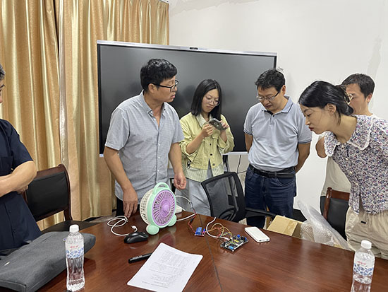 最后,沈亞東老師展示了一個科創(chuàng)實物成果——“語音智能控制風扇”。通過簡單的語音指令,風扇即可實現(xiàn)開和關,生動體現(xiàn)了人工智能與生活的結合。這一演示不僅激發(fā)了成員們的創(chuàng)新靈感,更傳遞了工作室的理念:”科創(chuàng)源于生活,教育回歸實踐。”