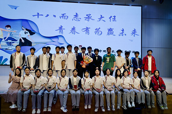 校長呂富登臺致辭。他回顧了學校發展歷程和同學們在校的點滴成長,講述了優秀學長學姐的求學故事,鼓勵大家以成年為新起點,樹立遠大理想,追隨榜樣腳步,在知識的道路上砥礪前行,用實際行動書寫屬于自己的青春故事。