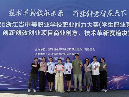 為了將最好的效果呈現給出來,三位學生與戴莉、王婧兩位指導老師組成的團隊聚焦PPT呈現、匯報思路與舞臺呈現反復打磨。以傳承人夏鑫的創業故事為主線構建匯報邏輯,反復演練優化表達,融入沉浸式元素設計舞臺效果,細化每個展示細節。同時,團隊針對文本累計修改版本幾十次,答辯環節反復訓練以應對評委提問,最終憑借專業表現斬獲金獎,展現中職學子非遺創新的青春力量,給這項從去年嘉興市賽開始的長達十個月的比賽畫上圓滿句號。
