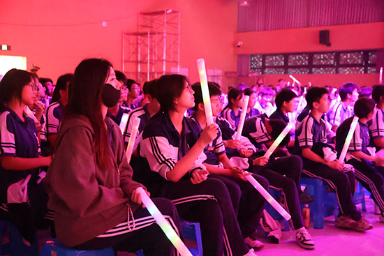 活動由2415班李浩博、2411班俞雨彤兩位學(xué)生主持,該校師生樂隊以一段激情澎湃的演奏拉開了活動序幕,鏗鏘的鼓點與躍動的旋律瞬間點燃全場?!恫恢胤辍贰兜弥降滟F的一天》《易燃易爆炸》《麻雀》……一首首洋溢著青春氣息、有著多元曲風(fēng)、展現(xiàn)選手音樂才華的歌曲逐一登場演唱,引爆全場,歌聲中綻放出不凡的光芒,而中場時的學(xué)生街舞社團(tuán)帶來的活力舞蹈《diamond》將氣氛推向高潮,展現(xiàn)了學(xué)子蓬勃的青春風(fēng)采。2025年杭州市臨平區(qū)中學(xué)生“十佳歌手”得主、2214班的馬星同學(xué)也來到現(xiàn)場,獻(xiàn)唱經(jīng)典曲目《大山》,精湛的演唱技巧與感染力為現(xiàn)場觀眾帶來震撼體驗。