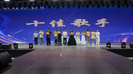 經(jīng)過激烈角逐,該校喻新凱副校長宣布“校園十佳歌手”和“優(yōu)秀歌手獎”獲獎名單。獲獎選手在歡呼聲中登臺領(lǐng)獎,校領(lǐng)導(dǎo)為其頒發(fā)獎杯和榮譽(yù)證書并合影留念,掌聲與燈光共同為這些追夢學(xué)子加冕。