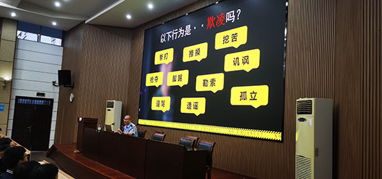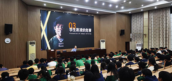 講座中,葉斌隊長結合真實案例,深入淺出地講解了校園欺凌的表現形式、危害及法律后果,并重點普及了《未成年人保護法》《治安管理處罰法》等相關法律法規。他提醒學生,面對欺凌行為時要勇敢說“不”,學會運用法律武器保護自身權益,同時呼吁同學們樹立正確的價值觀,互幫互助,共建友善校園。