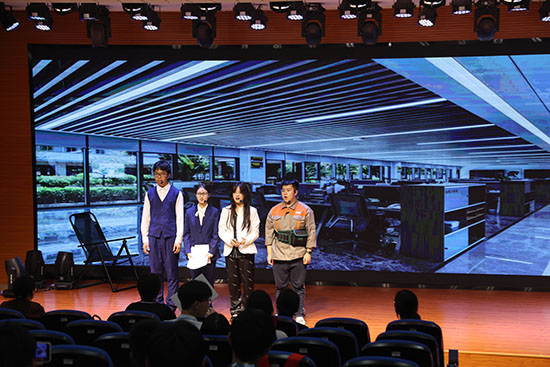 該校積極探索中職英語教學創新改革,推進英語教育戲劇實踐,將課本內容與生活場景、職業特色融合,在戲劇舞臺上錘煉學生的英語核心素養,如《根植于平衡》通過“健康干預”的生活場景,將中職英語課標中“語言應用 + 文化認知 + 職業素養”的三維目標融入劇情,傳遞“平衡生活”的價值觀,宣揚“學用結合、素養導向”的語用理念。獲得二等獎的《早安,智能時代(Good Morning, Smart Era)》(指導教師:張倩、李海燕),借角色沖突傳遞“理性看技術”等價值觀,契合課標“學用結合”理念,而獲三等獎的《誰是真正的孩子?(Who is the true child?)》(指導教師:李海燕、馮妍蓉)則通過演繹父母沉迷手機忽視孩子的情節,反映出現代社會“手機依賴癥”這一普遍問題,突出“科技與生活”“社會責任”等主題,引導學生思考科技對家庭關系的影響,培養學生的理性批判思維。