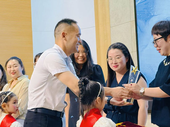 第二篇章:成長之歌·感恩向行。中心幼兒園大四班舞蹈《幻視長安》;中心幼兒園、第二幼兒園、洄村中心村幼兒園的大班幼兒表演武術操《中華少年》;親子節(jié)目《愛的華爾茲》; 第二幼兒園大二班幼兒舞蹈《童夢留聲機》;中心幼兒園大班幼兒、家長、教師代表朗誦《時光信箱》。期間頒發(fā)三個年段的“美麗家長”證書。