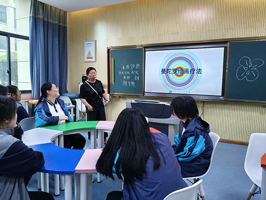 培訓伊始,柳紅梅老師向學生們介紹了曼陀羅繪畫療法的起源、原理和作用。曼陀羅繪畫源于佛教密宗,它以圓形圖案為基礎,通過色彩和線條的組合,能夠反映出繪畫者的內心世界,同時也具有心理療愈的神奇功效。在學習過程中,學生們全神貫注地聆聽,對這種新穎的療法充滿好奇。?