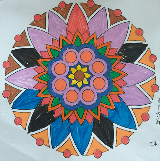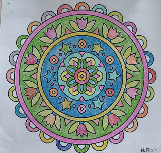 在繪畫過程中,柳老師穿梭于學生之間,不時給予鼓勵和指導,幫助學生們更好地理解自己的作品。繪畫完成后,學生們紛紛分享了自己的創作思路和內心感受。學生小李表示:“在繪畫時,我感覺自己完全沉浸其中,忘記了學習的壓力和煩惱,心情也逐漸放松下來。看著自己完成的作品,好像內心的焦慮也被一點點治愈了。”許多學生也都表達了類似的感受,他們驚訝地發現,曼陀羅繪畫就像一把鑰匙,打開了他們封閉已久的內心世界。?