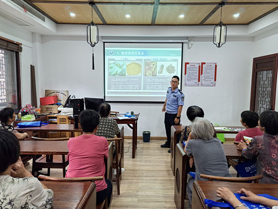 派出所輔警許波擔(dān)任主講,他結(jié)合老年人群體特點(diǎn),深入剖析了毒品危害。講座通過(guò)仿真毒品模型展示,重點(diǎn)揭露了那些偽裝成“特效藥”“神奇保健品”的第三代毒品真面目,提醒老年朋友高度警惕。許波運(yùn)用真實(shí)案例,以案說(shuō)法,生動(dòng)闡釋了毒品對(duì)個(gè)人健康、家庭幸福及社會(huì)穩(wěn)定的毀滅性破壞,強(qiáng)調(diào)“莫沾毒、沾必悔”。現(xiàn)場(chǎng)互動(dòng)熱烈,老人們?cè)诔两街v解中切實(shí)提升了識(shí)毒、拒毒、防毒能力。