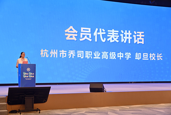 會議進行了授牌儀式,15家新會員企業(yè)、3家新晉理事單位及1家新晉副會長單位獲頒牌匾。學校作為新晉理事單位接受區(qū)領(lǐng)導授牌,同時,卻旦校長作為會員代表上臺發(fā)言。她指出,喬司職高作為臨平區(qū)唯一一所為服裝行業(yè)輸送產(chǎn)業(yè)鏈各類基礎(chǔ)性人才的職業(yè)學校,服裝專業(yè)從1984年創(chuàng)辦,至今已有40多年的辦學歷史,從該專業(yè)畢業(yè)了約5千名畢業(yè)生,為數(shù)不少的畢業(yè)生至今仍堅守在服裝行業(yè)的管理、設(shè)計、生產(chǎn)、營銷等崗位上,為推動行業(yè)發(fā)展和轉(zhuǎn)型升級發(fā)揮了應(yīng)有作用。她提出,職業(yè)教育需要通過與企業(yè)尤其是行業(yè)協(xié)會合作,雙向發(fā)力,協(xié)同育人,共同培養(yǎng)符合市場需求的高素質(zhì)高技能人才。