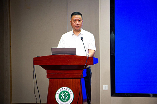 衢州旅游學(xué)校黨總支書記徐善軍致歡迎詞。