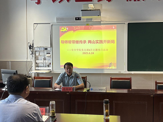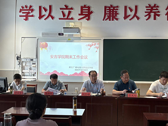 6月24日下午,浙江開放大學安吉學院全體教師在會議室召開期末工作會議。會議由安吉學院黨支部書記、院長時志福主持,副院長吳培林、袁鳳鳴、李明和支部委員曾慶富在主席臺就坐。