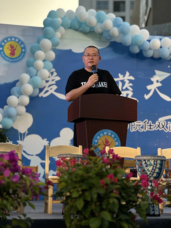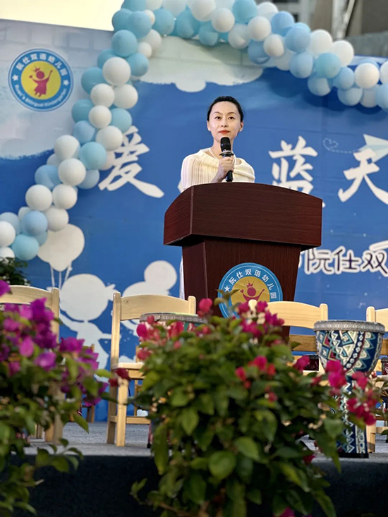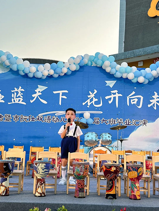 “當(dāng)夏日的陽光灑滿大地,當(dāng)微風(fēng)輕拂過我們的笑臉,我們滿懷期待與喜悅……”8位主持人激情洋溢的話語拉開了演出的帷幕。陳咪咪園長(zhǎng)熱情致辭:欣喜于幼兒的成長(zhǎng),一聲聲動(dòng)情的祝福傳達(dá)出對(duì)幼兒的不舍與希冀;一句句誠(chéng)摯的謝意表達(dá)對(duì)家長(zhǎng)的關(guān)心和支持。屠瑾予爸爸用童趣比喻與暖心寄語,傳遞對(duì)幼兒園、老師、孩子的感恩與暖心。畢業(yè)生代表駱羽楊大方自信,講述了自己在幼兒園的愉快生活,流露出對(duì)幼兒生活的眷戀和對(duì)未來的向往。