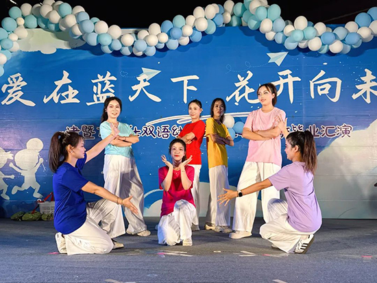 第二篇章:在愛里追光。中國(guó)舞《咿呀咿呀小嗲嗲》甜甜的“咿呀”聲滿載著對(duì)未來的可愛憧憬。大5班情景劇《木蘭辭》用勇氣與擔(dān)當(dāng)畫下最燃的句點(diǎn),奔赴新征途!大2班情景劇《紅色中國(guó)夢(mèng)》宣告“強(qiáng)國(guó)的夢(mèng)想,由我接力!畢業(yè),是新征程的號(hào)角!”教師舞蹈《快樂女孩》飛揚(yáng)的笑臉,躍動(dòng)的步伐表達(dá)對(duì)幼兒的深愛與祝福,用奔放舞姿說出“愿快樂永遠(yuǎn)是你的底色,勇敢追夢(mèng)吧,親愛的孩子!畢業(yè)快樂,前程似錦!”大3班情景劇《遨游太空》用無邊想象力,向幼兒園告別,向未來許下的璀璨諾言:征途是更廣闊的宇宙!