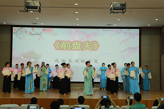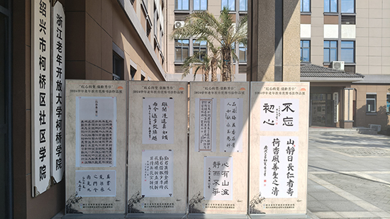 書法、攝影靜態(tài)類作品展示的現(xiàn)場設在一樓大廳,書法班學員筆力遒勁的作品傳承傳統(tǒng)文化,攝影班學員用鏡頭定格自然風光與生活溫馨瞬間,吸引眾多學員駐足。三樓報告大廳內(nèi),13個精心準備的節(jié)目輪番登場,越劇表演扮相精致、唱腔婉轉(zhuǎn),太極拳舒緩優(yōu)雅,民族舞靈動絢麗,韻律武術(shù)剛?cè)岵铣坑茡P動聽,精彩的節(jié)目表演令人目不暇接。展演活動不僅是老年學員學習成果的集中呈現(xiàn),更是他們擁抱新時代、突破年齡局限的生動見證,同時彰顯了他們積極向上的精神風貌。