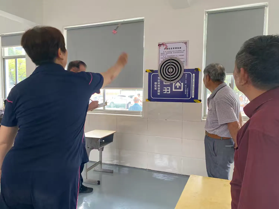 來自8個小組的退休教師歡聚一堂,在運動場上盡情揮灑活力,享受運動帶來的樂趣??紤]退休教師的興趣和愛好,設置了富有趣味性又適合老年人參與的項目:男子兜球,女子飛鏢。兜球場地設置在田徑場上,飛鏢則在一樓教室內。兩個場地同時進行,參賽教師個個精神矍鑠,斗志昂揚,用矯健身姿、敏捷的動作詮釋“老有所樂、老有所為”的處世態度。比賽場地上你追我趕,奮勇爭先。成功了,高興不已,連同場外人員喝彩不斷;失利了,不氣餒,調整身手以待下一次取得成功。場外,長時不見的老同事們扎堆三五成群交流近況,分享生活中的趣事和養生的經驗,交談中不忘深情回憶曾經工作時的分分秒秒,兩個場地始終充滿著溫馨和諧的氛圍。