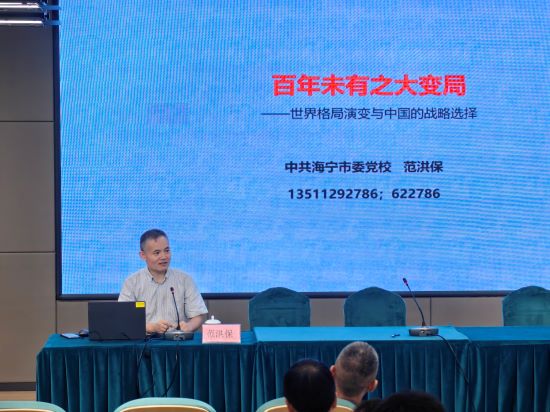 在培訓期間,海寧市委黨校教研室主任范洪保老師帶來了一場發人深省的《百年未有之大變局》主題講座。范老師從“百年未有之大變局”的提出過程講起,詳細闡述了其背后的時代背景與發展脈絡,使教師們對這一概念有了更為清晰的認知。接著,深入剖析了大變局的深刻內涵,從國際政治格局的調整、全球經濟秩序的重塑,到科技革命帶來的顛覆性影響等多個層面,層層遞進,引導教師們深入思考。同時,范老師還著重分析了中國在這場大變局中面臨的機遇與挑戰,鼓勵教師們培養學生的全球視野與應對復雜變化的能力。最后,就中國的戰略選擇與應對之策展開探討,為教師們在教育教學中如何融入家國情懷、培養擔當民族復興大任的時代新人提供了思路。?
