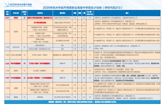 2025 年,臨平商貿職高招生規模達 14 個班,其中包含 2 個職普融通班(美術類、藝術類),涵蓋 9 個細分類別,共計招生人數 558人。學校堅持“以學生為中心” 的教育理念,依托雄厚的師資力量、先進的教學設施與豐富的實踐資源,為每一位學子提供優質的教育服務。(杭州市臨平商貿職業高級中學)