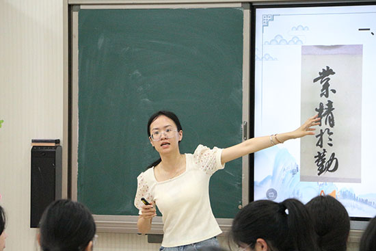 “業精于勤”乃千年古訓,本節書法課聚焦這四個楷字的結體法則,以中國建筑、動漫等比喻漢字結構,引發聯想,最終職教學子的楷書作品在展板上鋪開,那些或端莊或稚拙的字體結構,正是千年法度與現代工匠的時空對話。