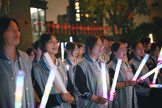 當(dāng)沈琪校長與高三學(xué)生賀湘君領(lǐng)唱《海闊天空》時,全體同學(xué)齊聲高歌,嘹亮的歌聲回蕩在校園上空,那是青春的吶喊,是夢想的宣言!