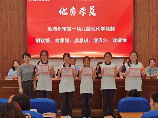 6月26日下午,浙江省湖州藝術與設計學校2025年幼兒保育專業現代學徒制總結表彰大會在報告廳舉行。大會以“深化產教融合,共育幼教英才”為主題,全面總結了現代學徒制項目實施成果,表彰優秀學員和實習單位,進一步推動校企協同育人。