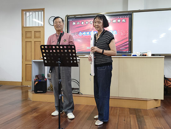 每周四上午,在浙江老年開放大學平湖學院的304教室內,飄出陣陣悠揚動聽的歌聲,這里,是我們的合唱班。在王老師專業且充滿熱情的指導下,學員們學得專心、練得認真。課后,學員們說,每一節課,收獲頗豐,使我們對合唱中的氣息訓練有了更全面的認識,對唱好歌也更有信心了。6月17日是合唱班師生的大聯歡,學員們早有準備,競相上臺表演,節目精彩紛呈。