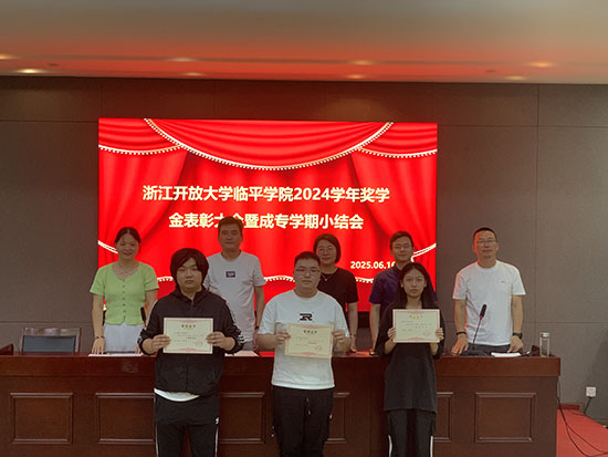 為表彰先進(jìn),樹立榜樣,營(yíng)造勤學(xué)上進(jìn)的良好學(xué)風(fēng),6月16日,浙江開放大學(xué)臨平學(xué)院獎(jiǎng)學(xué)金表彰大會(huì)在學(xué)院報(bào)告廳隆重召開。學(xué)院院長(zhǎng)沈琪、副院長(zhǎng)陳勝瑩、繼教處主任夏麗萍、副主任屠丹華、相關(guān)部門負(fù)責(zé)人出席,獲獎(jiǎng)學(xué)生代表及全體成教脫產(chǎn)班師生參加。