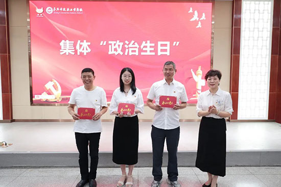 “我志愿加入中國(guó)共產(chǎn)黨……”在集體“政治生日”儀式上,校黨委書記范曉春為7月入黨的幾位黨員頒發(fā)紀(jì)念賀卡,帶領(lǐng)全體黨員進(jìn)行莊嚴(yán)宣誓。鏗鏘誓言在報(bào)告廳回蕩,既是對(duì)入黨初心的回溯堅(jiān)守,更是對(duì)“為黨育人、為國(guó)育才” 使命的鄭重承諾,讓黨員們?cè)谡蝺x式中強(qiáng)化身份認(rèn)同,汲取奮進(jìn)力量。