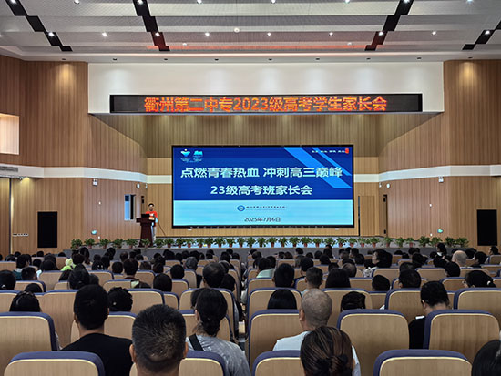 7月6日上午,衢州第二中等專業學校正式吹響2026年高考集結號,在多功能廳舉行以“點燃青春熱血,沖刺高三巔峰”為主題的高三年級家長會。家校齊聚一堂,共繪學子未來藍圖,為沖刺高考凝聚最強合力。