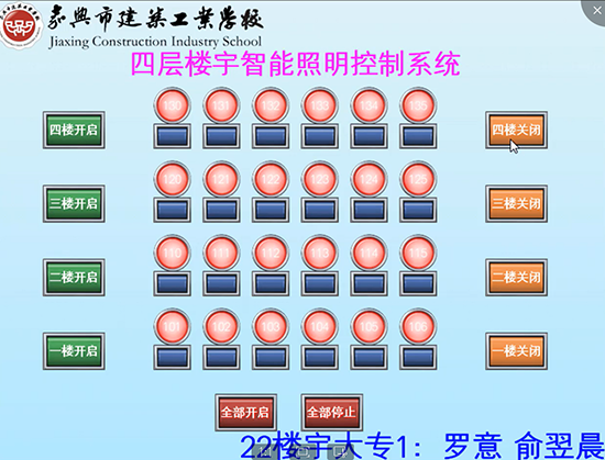在工程管理系的雙創(chuàng)工坊,精耕實踐澆灌了一朵朵創(chuàng)意之花。工程造價專業(yè)的學生從宿舍樓入手,從土建到安裝、從手算到電算,從BIM建模再到精準計價,實現(xiàn)了將所學知識應用于具體項目的實戰(zhàn)演練。建筑智能化設備安裝與運維專業(yè)的作品《四層樓宇智能照明控制系統(tǒng)》,通過組態(tài)軟件對一幢四層的樓宇進行全方面的照明系統(tǒng)監(jiān)測與控制,可單房間控制、可樓層統(tǒng)一控制、可整樓統(tǒng)一控制,真實展現(xiàn)學生專業(yè)技能。