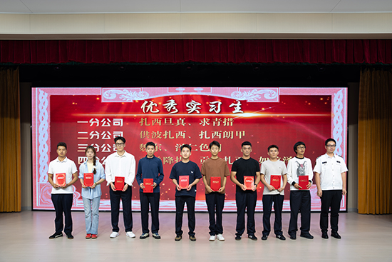 扎西旦真、求青措等八名學(xué)生被評選為優(yōu)秀畢業(yè)生,嘉通集團(tuán)總經(jīng)理何宇健為他們頒獎。供波扎西、扎西朗甲等九名學(xué)生被評選為優(yōu)秀實習(xí)生,嘉通交運集團(tuán)(籌)總經(jīng)理沈洪兵為優(yōu)秀實習(xí)生頒獎。學(xué)校副校長肖福文宣讀準(zhǔn)予畢業(yè)學(xué)生名單,嘉興市交通運輸局副局長傅學(xué)練、若爾蓋縣相關(guān)領(lǐng)導(dǎo)為他們頒發(fā)畢業(yè)證書。