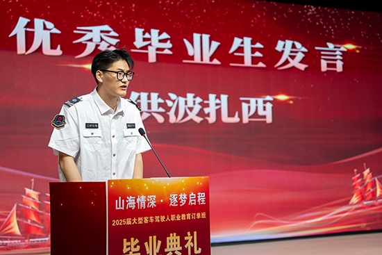 優(yōu)秀畢業(yè)生代表供波扎西發(fā)言,他表示在嘉興這片溫潤的土地,不僅掌握了精湛的技能,更為成為一名手握A1駕照、擁有汽車維修高級工證書的國企員工而感到驕傲,將不負(fù)韶華,不負(fù)期待,以精湛的技藝和赤誠之心,駛向更壯闊的人生征程。