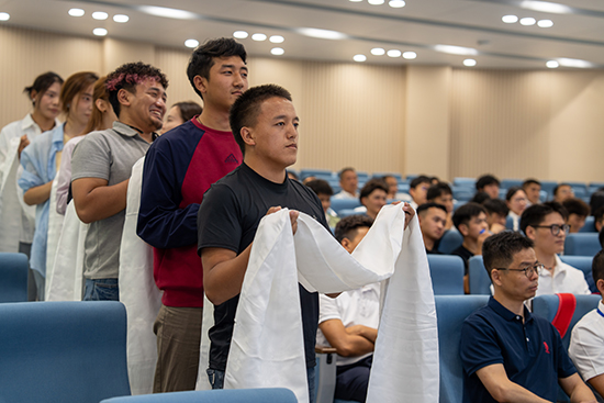 最后,學(xué)校為大客班學(xué)生舉行入職儀式,嘉通交運集團(tuán)(籌)董事長韓一峰為學(xué)生代表貼上工號牌,這群若爾蓋學(xué)子在今天完成從學(xué)生到職工的轉(zhuǎn)變。