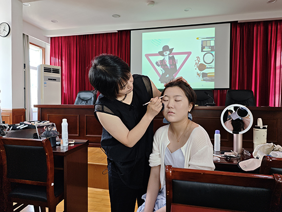 課堂上,專業化妝師從基礎護膚講起,結合夏季皮膚特點講解了清潔、保濕、防曬等護膚要點,隨后圍繞底妝、眼妝、唇妝等化妝步驟進行實操教學。考慮到準大學生們即將面對的校園生活和社交場景,老師特別示范了自然清新的“學生妝”,強調妝容要貼合年齡、突出個人氣質。