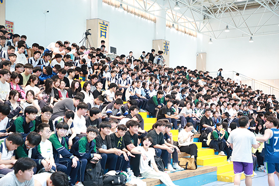 中場休息期間,本次賽事MC、校體育組陳超老師組織現場觀眾進行三分球投籃活動,同學們踴躍參與,弧線劃過穹頂的清脆入網聲與吶喊助威聲交織,氣氛熱烈。