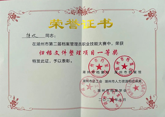 ——湖州交通技師學院教師勇奪全市歸檔文件整理競賽一等獎